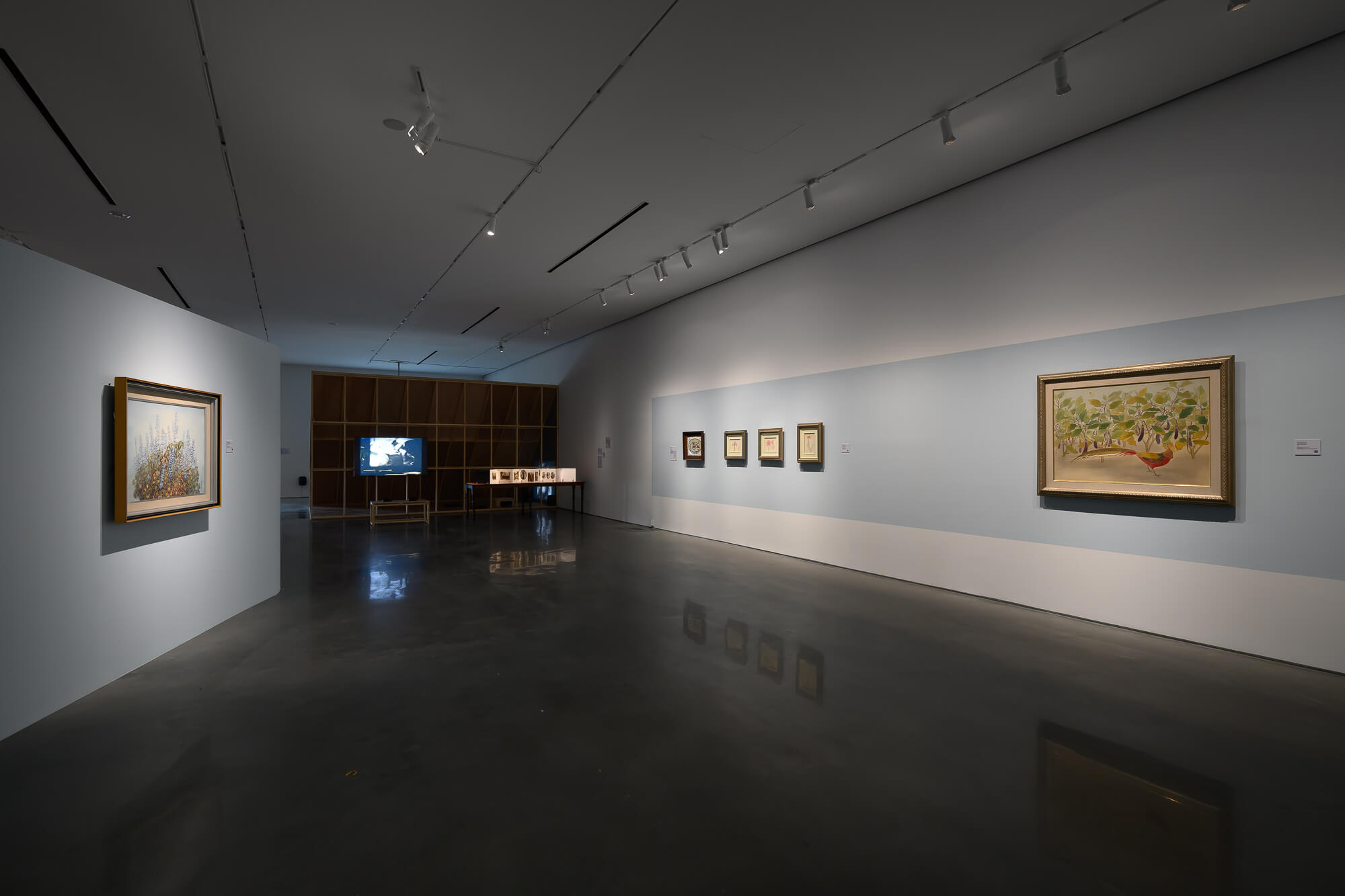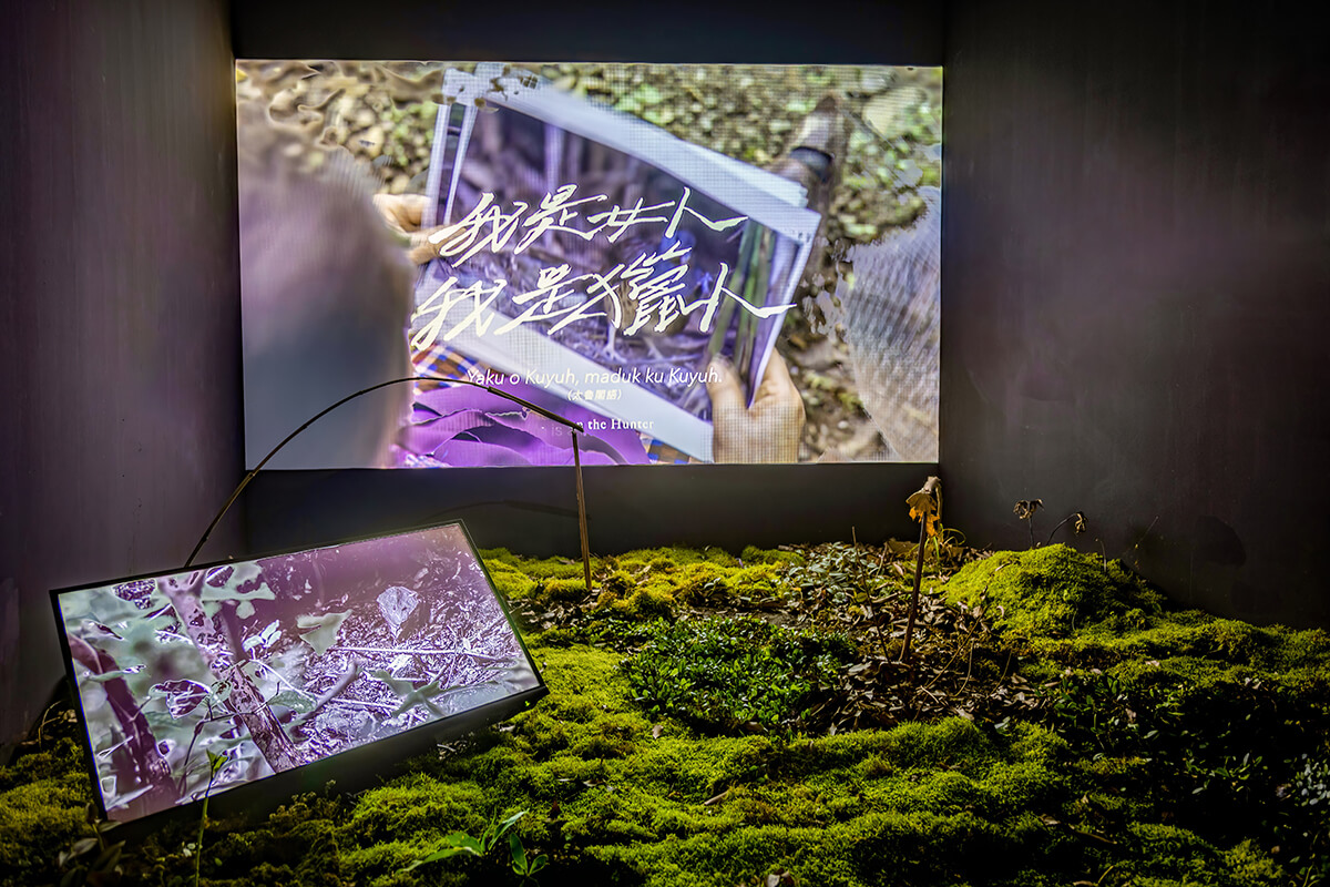 在〈擾動的記憶〉子題中,聚焦於探索人與非人的關係。陳瀅如《聞山海》使用聲音與氣味重構山海經的多物種世界;林之助《秋果》為他創作脈絡中少見的馬賽克作品,展現對自然細節的細膩觀察及美學重構。