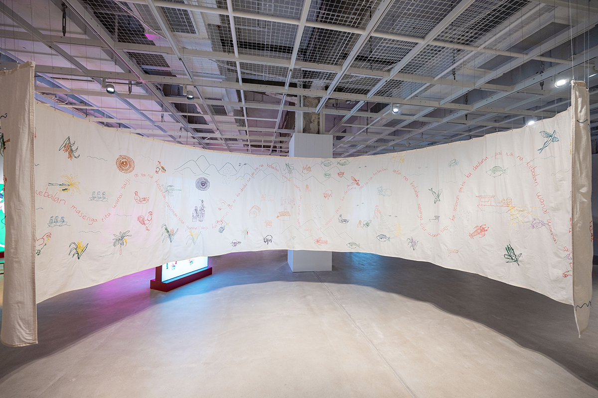 無論是汪洋、海峽或河流,「水」不僅是連接土地的交通途徑,更是具生命力的存在。它流淌著記憶和勞動的點滴,也蘊含着遷移、貿易、儀式與血緣的痕跡。同樣地,織物也不只是文化遺物,而是一個流動的、可觸摸的資料庫,與日常、神聖和集體密不可分。
